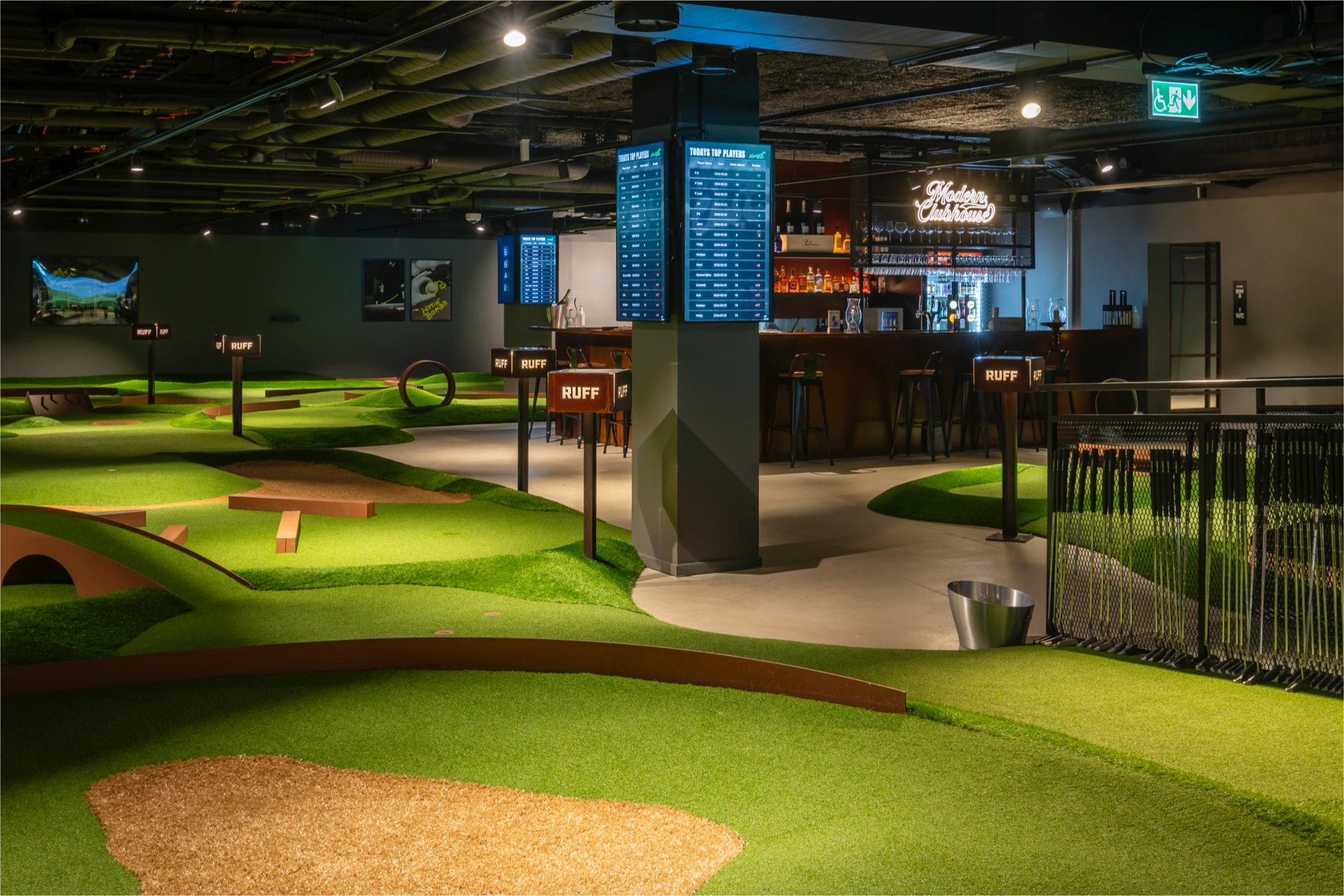 Minigolf inomhus, restaurang och bar under samma tak.
